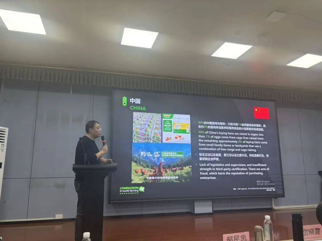 世界农场动物福利协会,中国区经理周钰彬老师分享主题为《国际非笼养蛋鸡浪潮下的行业变革与机遇洞察》,他强调了国际上非笼养蛋鸡的趋势,非笼养能更好地满足动物福利的需求,促进蛋鸡在更自然的环境中生长,提升鸡的健康水平和生活质量。非笼养蛋鸡的兴起,反映了消费者对于动物福利的高度关注,非笼养蛋鸡的市场需求上升为企业提供了新的增长机会。周老师的分享能够增强与会人士对动物福利重要性的认识,推动行业更加关注蛋鸡福利。周老师作为国际非政府组织的代表,分享国际上成功的非笼养养殖经验,为我国相关企业和农户提供了国际视野与借鉴。