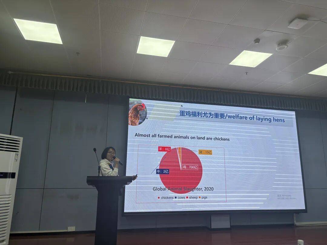 长期从事家禽应激生理以及动物福利研究,河南科技学院动科院副教授,硕士生导师,畜牧兽医学会动物福利与健康养殖分会理事张艳红老师分享主题为《蛋鸡散养系统中的动物福利实践----以啄羽行为控制为例》。蛋鸡在散养系统中,啄羽行为是一个常见且重要的问题,啄羽行为如果不加以控制,会导致鸡只受伤和生产性能下降,从而造成经济损失。张老师的报告聚焦于如何有效控制这一行为,旨在提高蛋鸡的生活质量,不仅关乎动物的生理健康,也涉及其蛋鸡生长福利,为整个养殖行业提供了切实可行的动物福利改善措施。她的研究为建立科学的动物福利标准提供了实证数据,帮助行业内外理解散养系统的特定需求,为政策的制定和标准的设置提供依据,使动物福利实践更加科学和规范化。